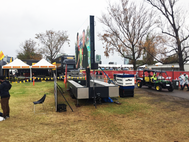 Macfarlane Generators 20kVA hire generator powering a big screen for the fans to watch on