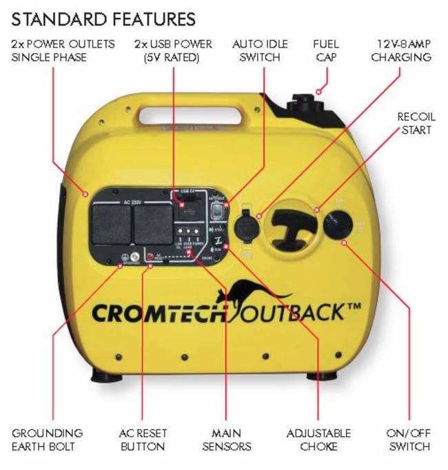 Cromtech Outback CTG2500i Portable Inverter Generator available from Macfarlane Generators