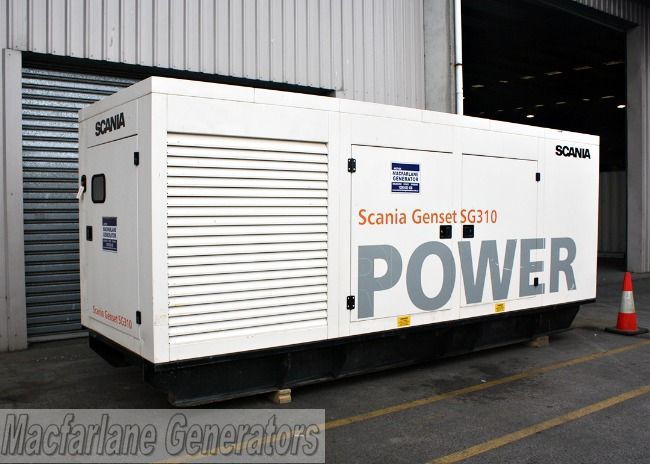 310kVA used Scania SG310SA5-01 enclosed generator set available from Macfarlane Generators