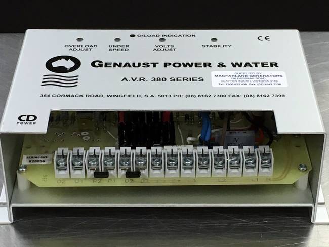 The AVR 380 is a solid state device designed to give accurate and stable voltage regulation of 50 or 60 Hz AC alternators under varying load conditions. The AVR 380 is a universal Australian designed and manufactured AVR that directly replaces the Dunlite UVR100, but will also electronically replace almost all known voltage regulators with or without separate excitation.